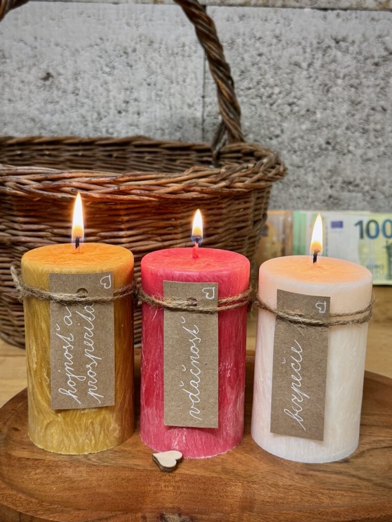 Vo variácií si vyber farbu k bielej a zlatej sviečke.