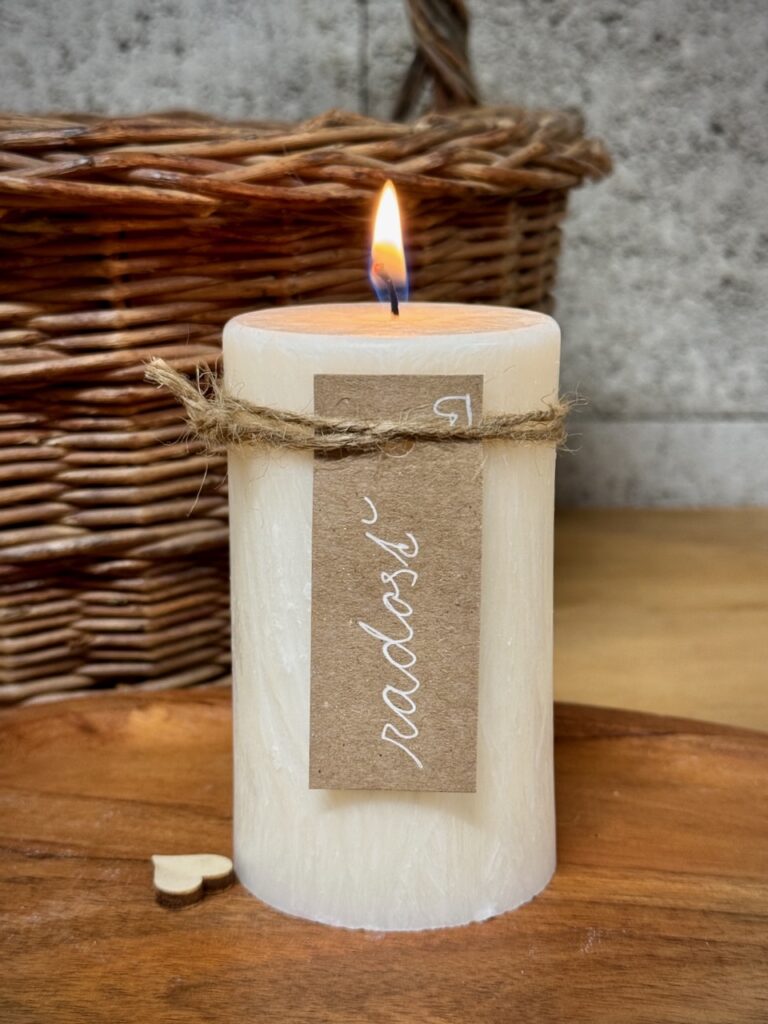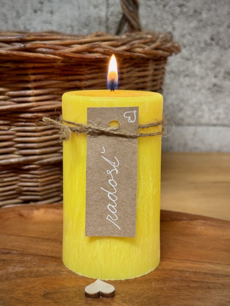 Zámerová sviečka Radosť rozjasní tvoju myseľ radostnými myšlienkami a naplní priestor pozitívnou energiou.